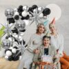 Pack Cumpleaños Plata, Negro y Blanco Decoración Fiesta Cotillón Globo Bola Disco