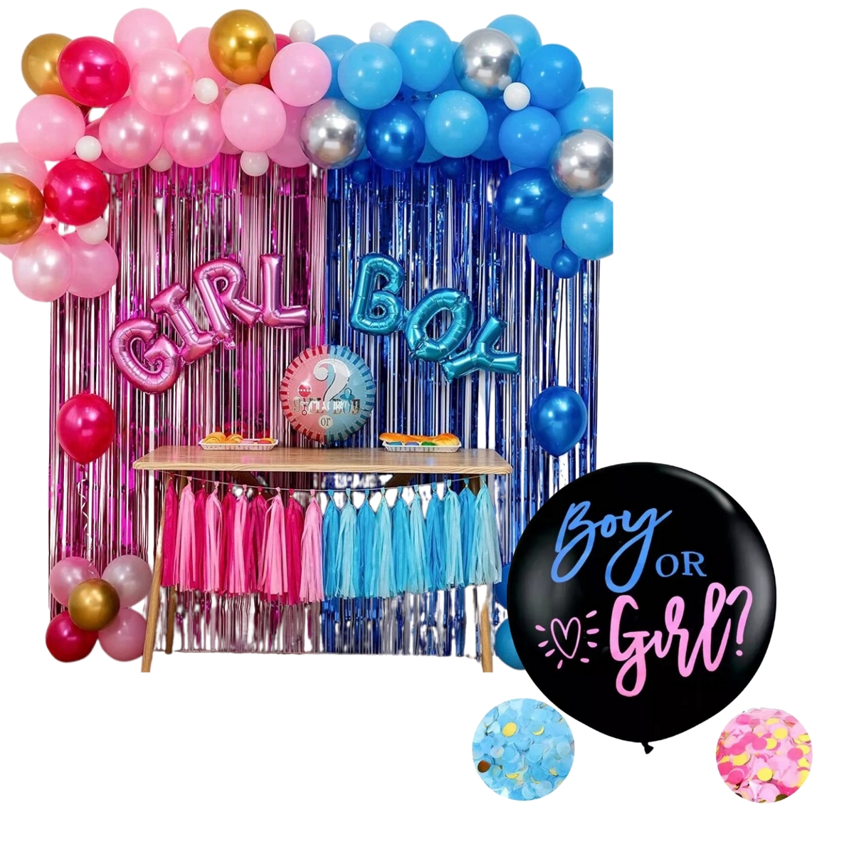 – 1 Globo Negro con Frase (Boy Or Girl) de 36pulgadas, Incluye 1 paquetico de Confetti Rosa y 1 Celeste