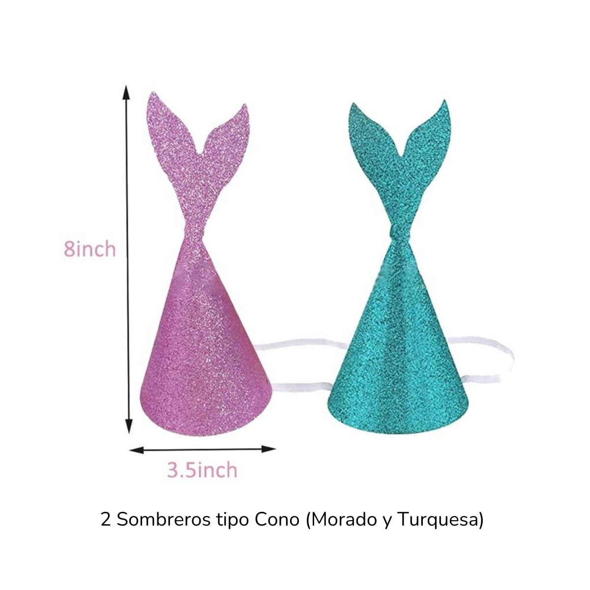 – 2 Sombreros Tipo Cono (Morado y Turquesa) 8×5″