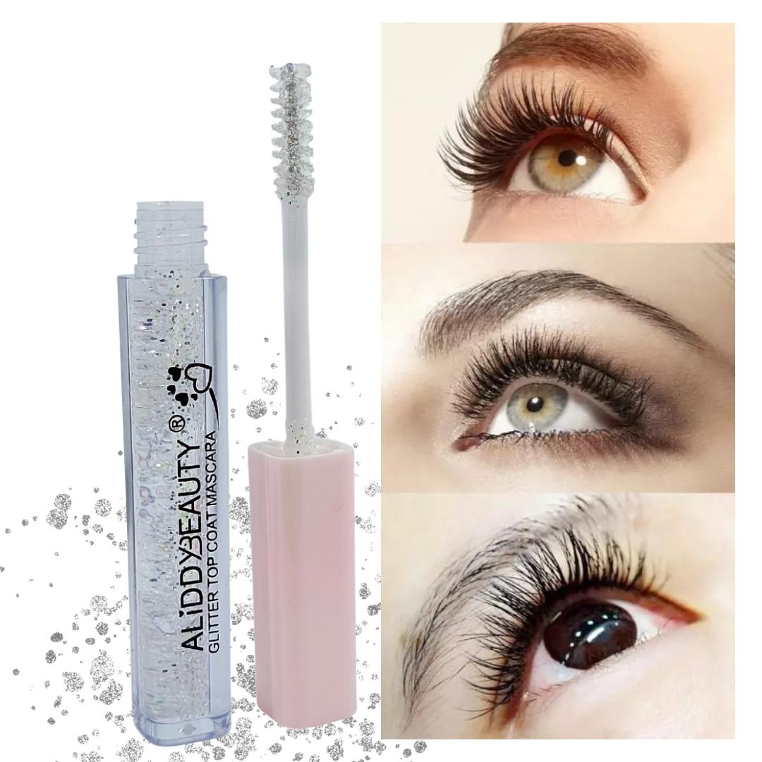 Mascara de Pestañas, Rímel Transparente con efecto Glitter, para dar mayor volumen a tu pestaña de color natura y luzcan destellos de luz para acompañar con tus sombras de ojos Glitter o Shimmer.