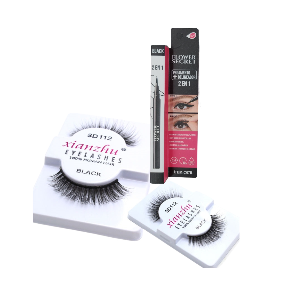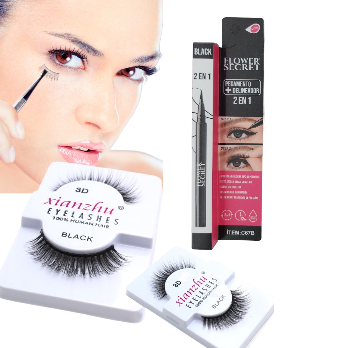 Set de Pestañas Postizas con Pegamento Mágico Tipo Delineador (2en1) Color Negro . Aplica de manera fácil y sencilla tus Pestañas postizas de color con nuestro, Kit de Pestañas Postizas destacando y resaltando tu mirada.